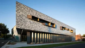Penggunaan material alami seperti kayu, batu, dan kaca sering ditemukan dalam interior gedung minimalis. Tekstur alami ini memberi karakter pada ruangan tanpa perlu dekorasi berlebihan.